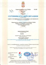 Технички опитни центар је, решењем Акредитационог тела Србије број 04-012 од 26.12.2005.године, акредитовано Сертификационо тело за сертификацију техничких производа. Током 2015. године, обновљена је акредитација према захтевима стандарда SRPS EN ISO/IEC 17065.